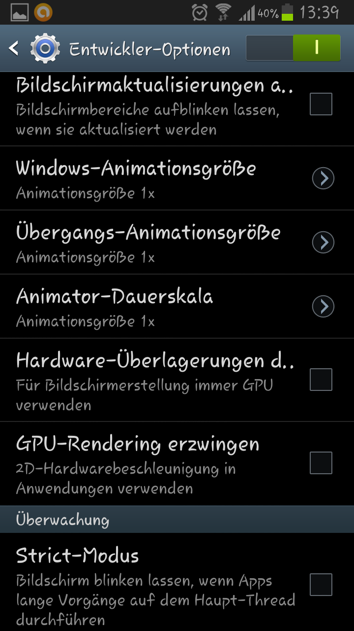 Er hat mir gesagt, ich sollte doch mal 7x auf die Buildnummer drücken und dann im Entwickler - OptionsMenü nach 4x MSAA suchen und dies aktiveren, aber die Funktion ist nirgends zu finden!