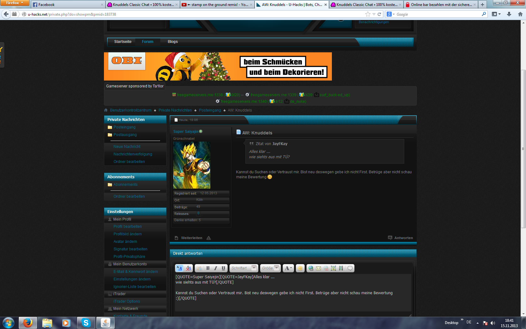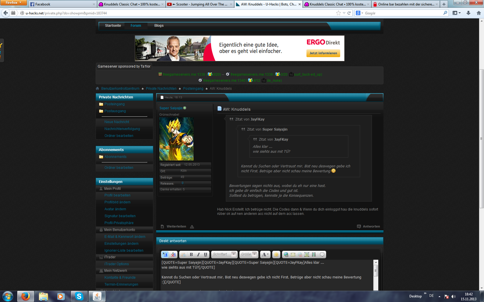 Ich war dabei mit ihm 50€ gegen 2300 Knuddels zu tauschen.