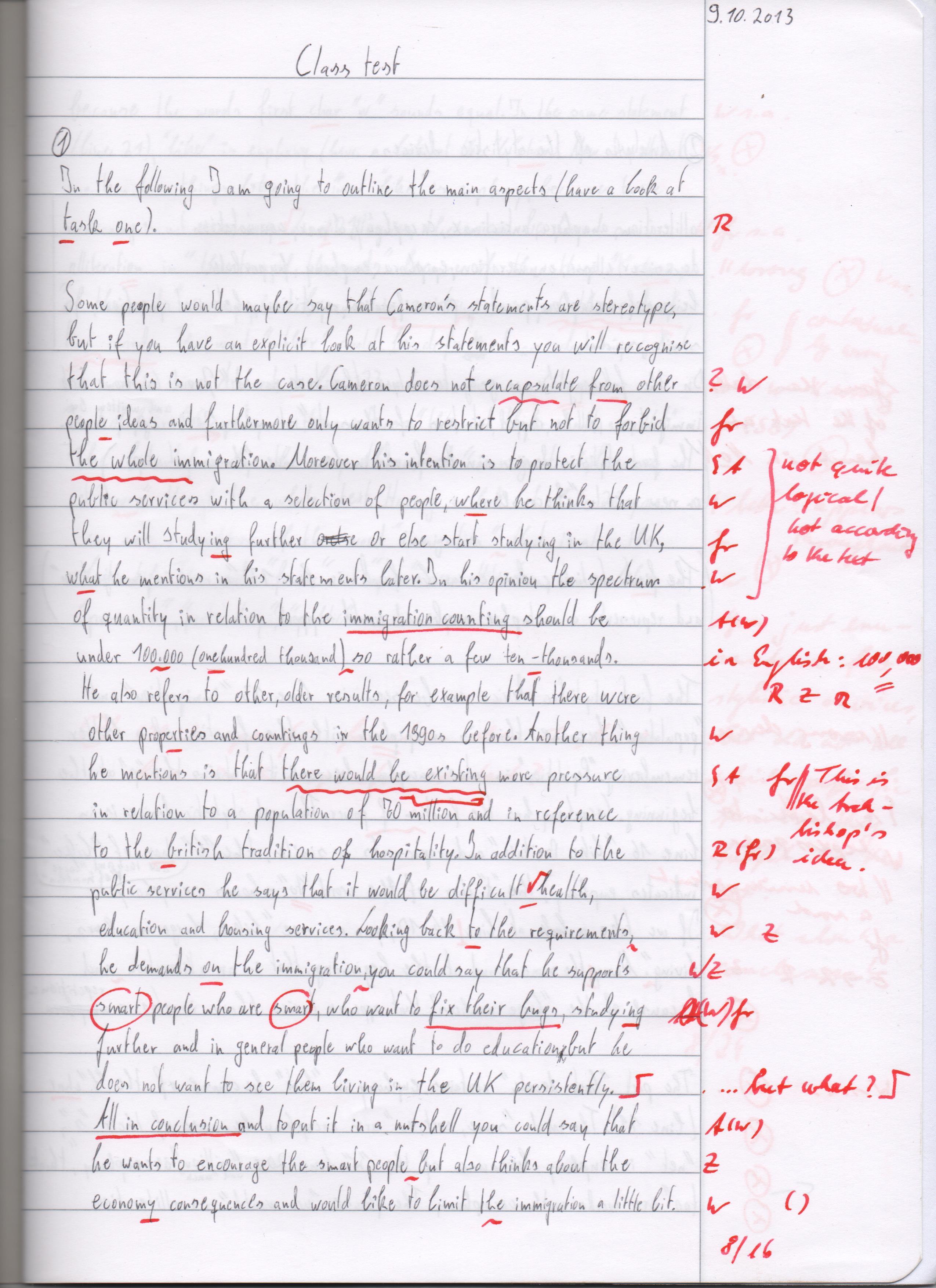 Ich hab heute die Englischklausur zurückbekommen und soll bis morgen (06.11.2013)