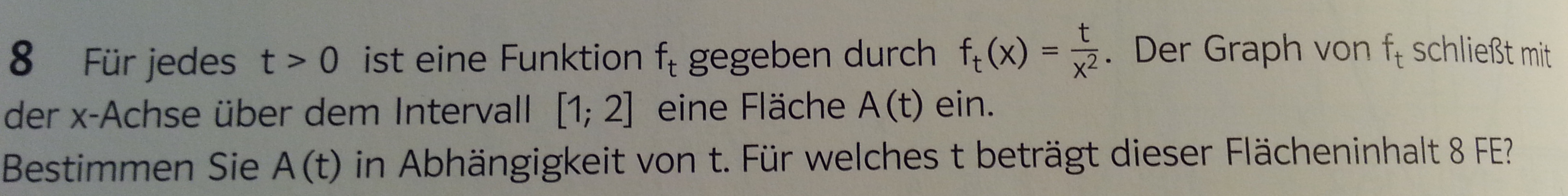 Daraus folgt, dass die Fläche der Funktionenschar der Betrag von -3t/2 ist. Betrag, weil eine Flächse nicht negativ sein kann, right?