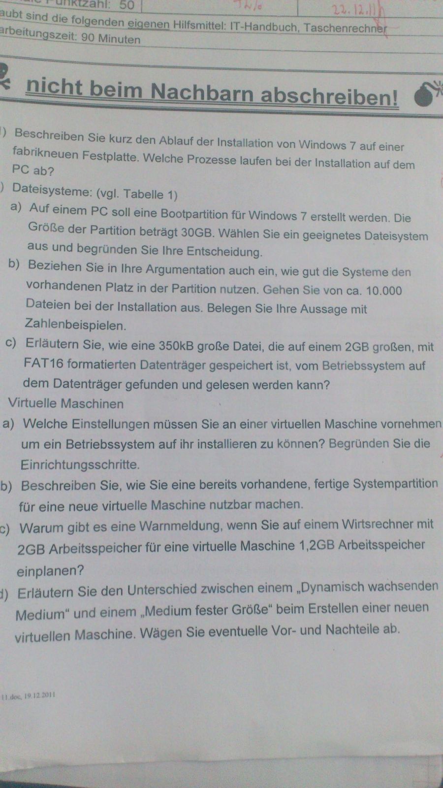 a) NTFS, da alte Dateisysteme wie FAT16 oder FAT32 gegenüber NTFS nur Nachteile bieten