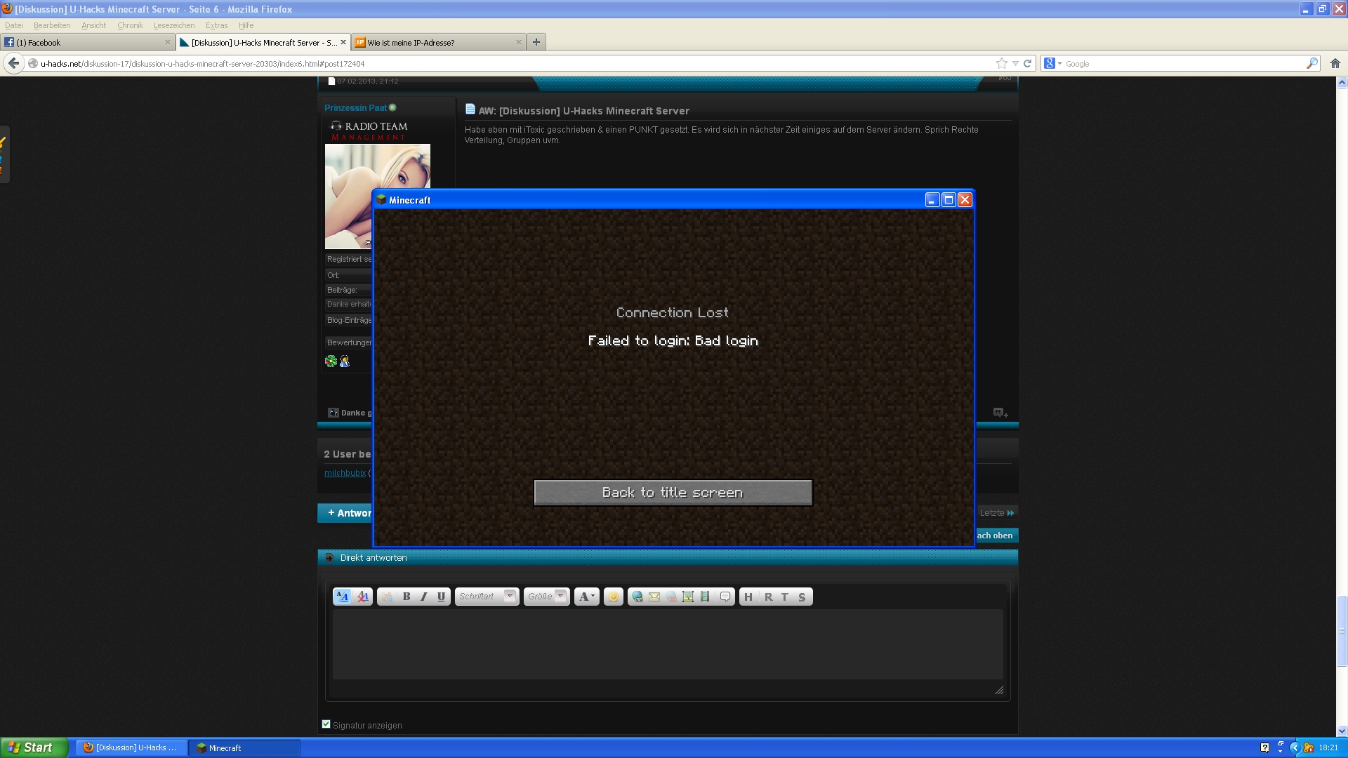 Seid geduldig, sobald wir das Problem lösen konnten, werden wir euch bescheid geben und ihr könnt wie gewohnt auf den MC Server.