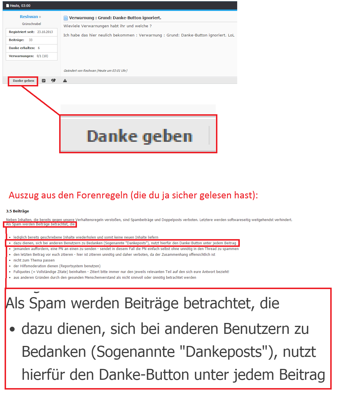 Verwarnung : Grund: Danke-Button ignoriert.