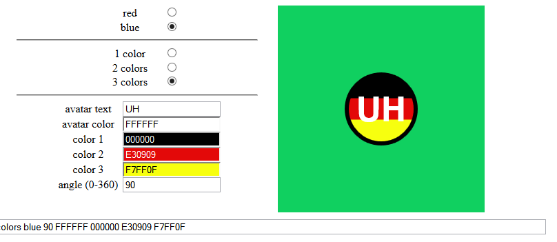 Der Admin muss dann /colors blue 90 FFFFFF 000000 E30909 F7FF0F