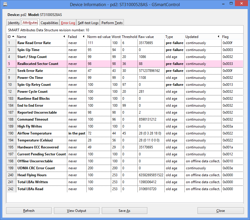 Ich bezweifle irgendwie das alle meine Platten exakt die selbe Anzahl an neu zugewiesenen Sektoren haben.