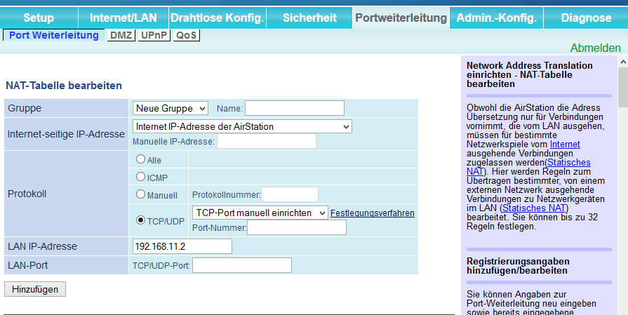 Buffalo WHR-G300N Port-Weiterleitung einrichten funktioniert nicht