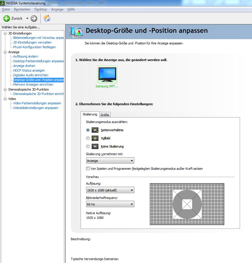 Gehe bitte in die NVIDIA Systemsteuerung -> Anzeige -> Desktop-Größe und -Position anpassen