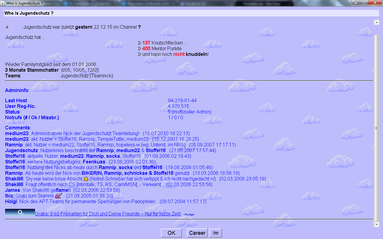 Jugendschutz, Kiki, Ironist, Nova15, crazy a, Mäxchen, Phyxas, sjel