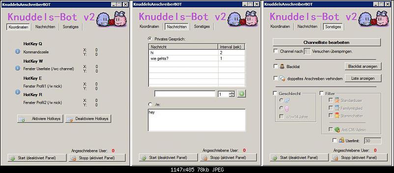 er funktioniert zwar aber wenn er arbeitet, kann man sonst nichts am pc machen.. außer vielleicht ein video nebenbei laufen lassen aber nicht im fullscreen modus weil das knuddelsfenster immer erreichbar sein muss für den bot.
