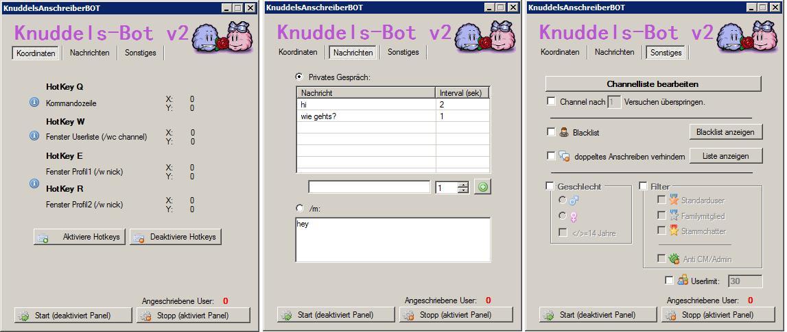 er funktioniert zwar aber wenn er arbeitet, kann man sonst nichts am pc machen.. außer vielleicht ein video nebenbei laufen lassen aber nicht im fullscreen modus weil das knuddelsfenster immer erreichbar sein muss für den bot.