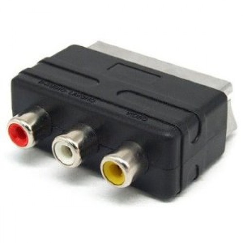 Hol dir paar RCA-->Scart Stecker, sehen in etwa so aus :