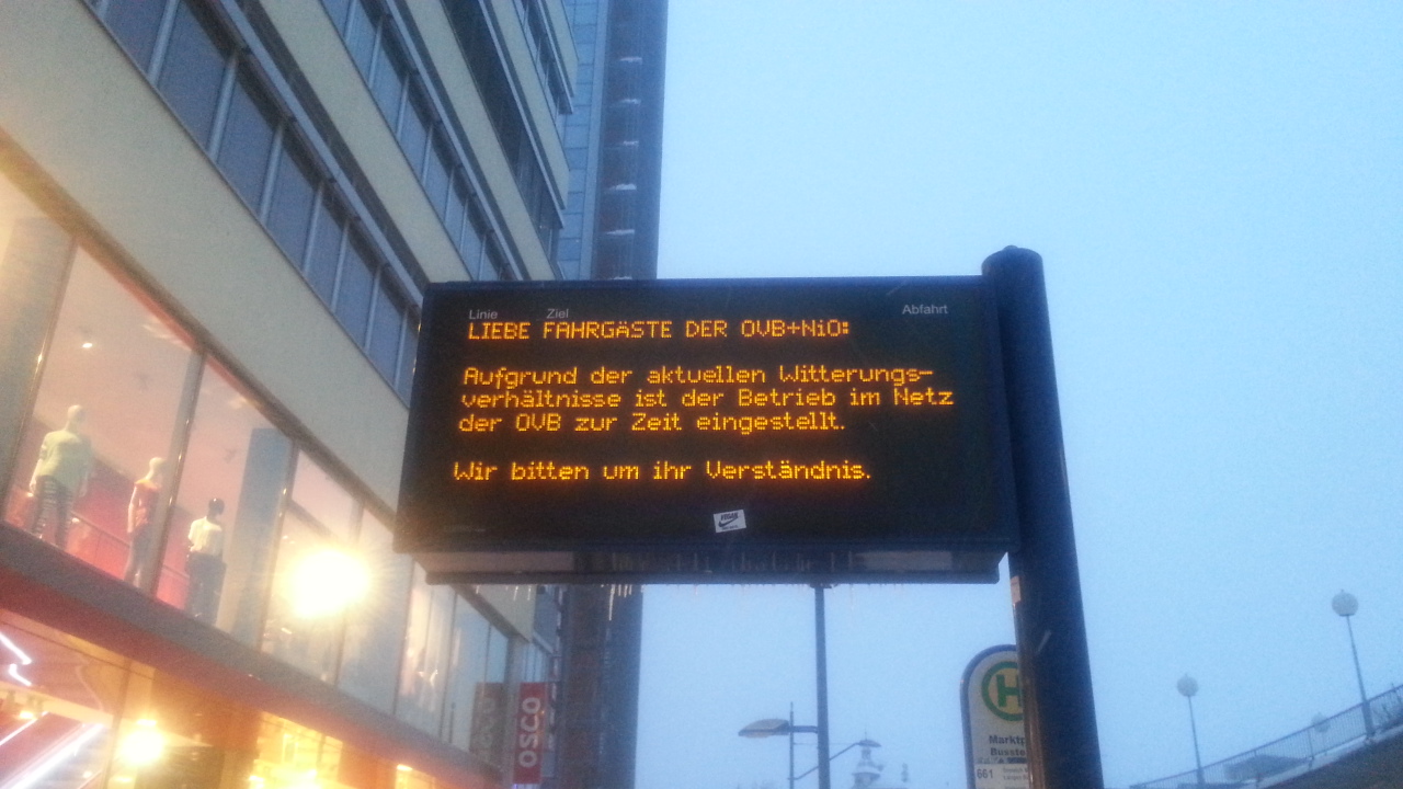 Schön einfach mal in der GESAMTEN Stadt (und das ist kein Dorf bei über 120.000 Einwohnern) den Busverkehr eingestellt.