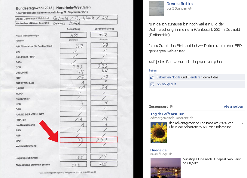 Vorher auf Facebook gesehen, das Bild stammt original von hier: 6 Fälle von Wahlbetrug – Bundestagswahl 2013 | TLB Pogo