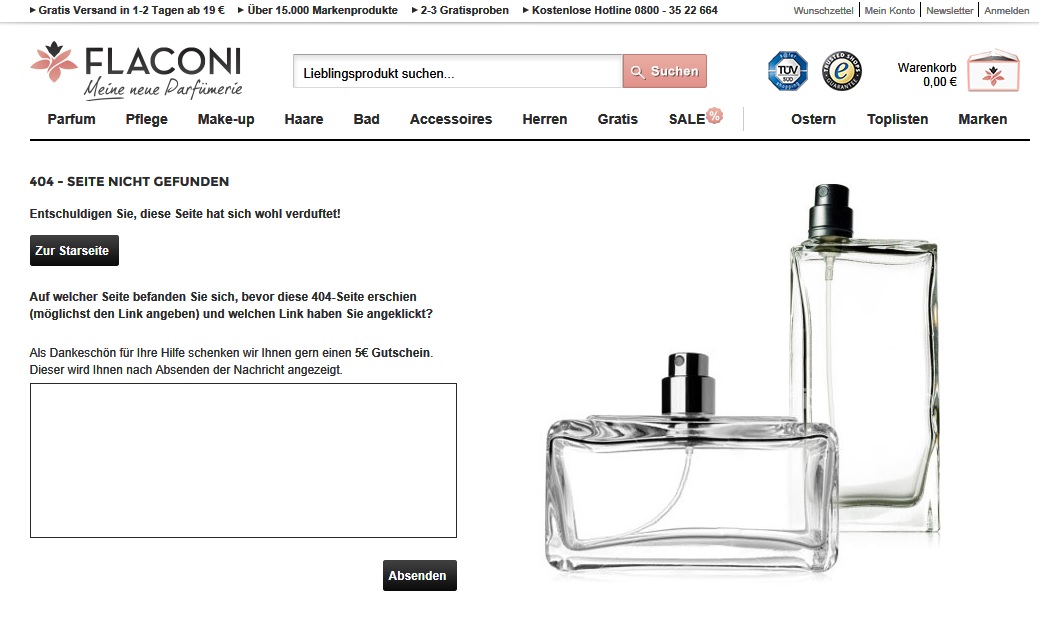 "404 - Seite nicht gefunden: Entschuldigen Sie, diese Seite hat sich wohl verduftet!".
