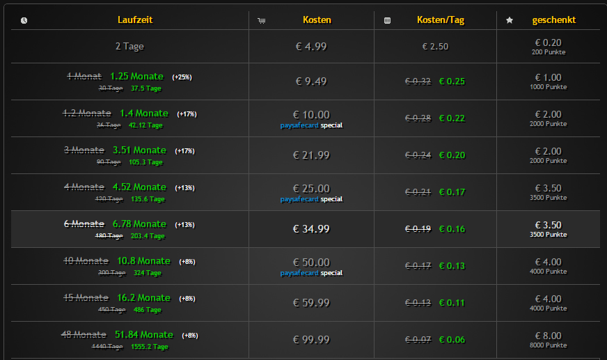 Es ist auch Möglich das Angebot mit Accounts zu nutzen die bereits Premium sind. In dem Fall verlängert sich die Premium-Laufzeit um die gebuchte Laufzeit inklusive Bonus.