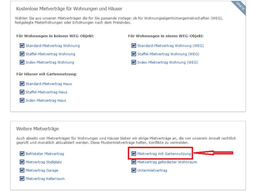 Ich suche den Mietvertrag mit Gartennutzung (Stand Januar 2015).