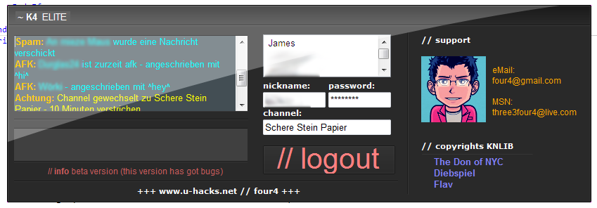 Die GUI gefällt mir irgendwie, sie hat schon was geiles an sich. Schön das es noch User gibt die sich mit der Knuddels Entwicklung auseinandersetzen und sich mit solchen simplen Projekten hoch arbeiten. Bin gespannt wie der Bot dann im Endeffekt laufen wird und wie er ankommt.