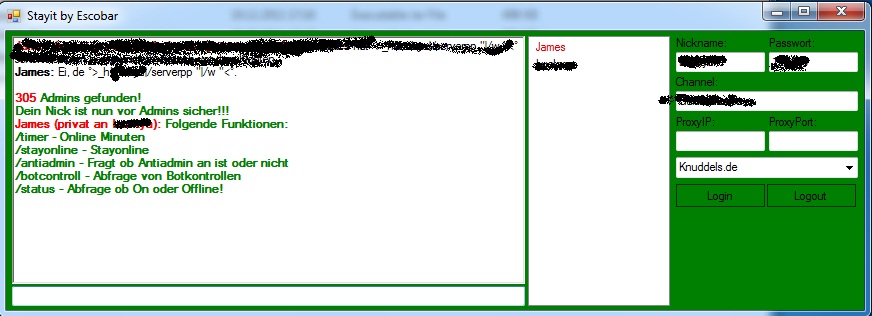 Von Escobar im Forum Knuddels StayOnline BotsAntworten: 3Letzter Beitrag: 02.02.2012, 22:18 -