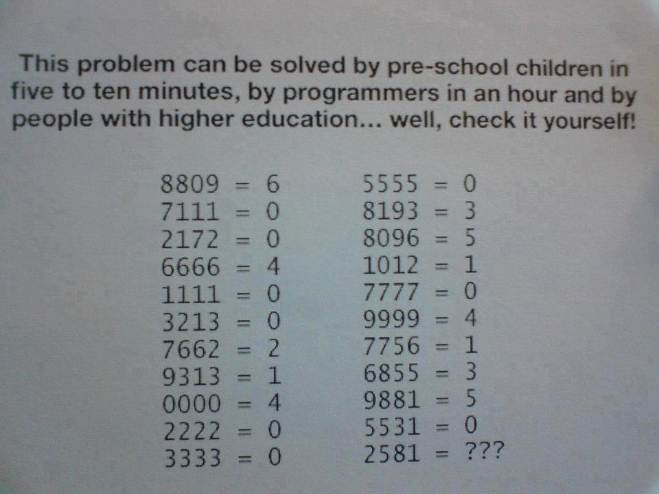 kleine Denksportaufgabe zum Wochenende. Vorschulkinder schaffen das angeblich in fünf bis zehn Minuten. Wie lange braucht Ihr?