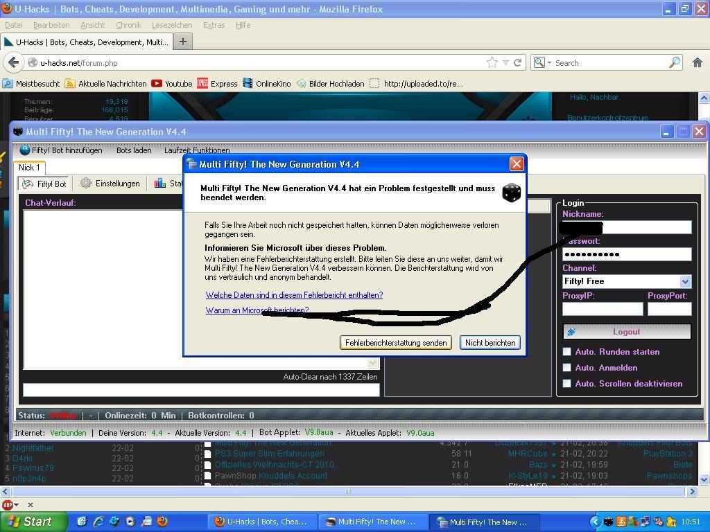 Das kommt bevor ich mich ein login will, die Enlog Maske läd.Multi Fifty! The New Generation V4.4 hat ein Problem festgestellt und muss beendet werden.