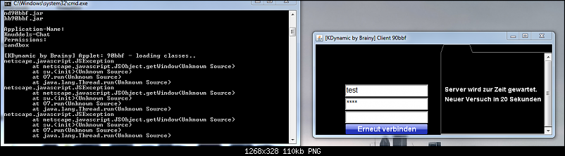 Wenn du die Batchdatei ausführst, solltest du die gleiche Fehlermeldung wie im Post darüber bekommen. Ich hoffe ja du hast die geöffnet, und nicht die jar-Datei. Die wird nämlich mit Parametern gestartet, was beim direkten aufrufen nicht der Fall ist.