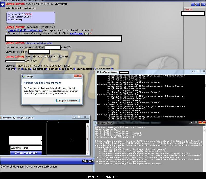 Danach hängt er sich auf, dass heißt er macht nichts mehr und dann kommt "Verbindung zum Server wurde unterbrochen"