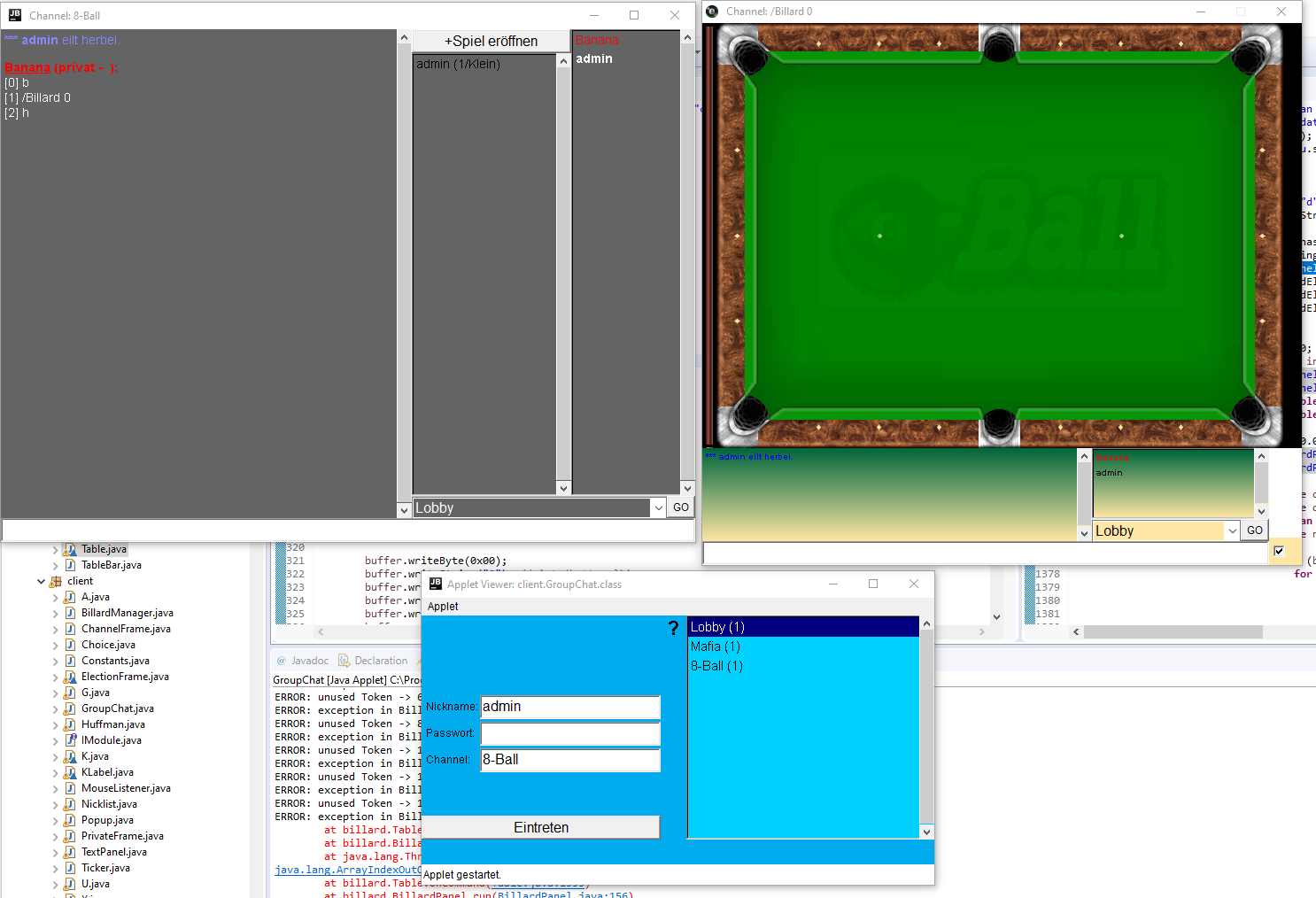 Hierzu habe ich die neuste Billard-JAR sowie den Uralt-Clienten knuddeskk88i genutzt, Billard hat sich ja nie geändert.