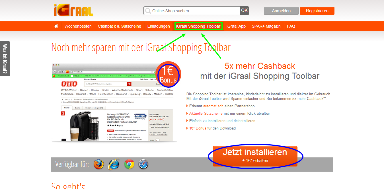 2. Dann installiert ihr noch die Igraal Toolbar, dafür bekommt ihr auch nochmal 1€.