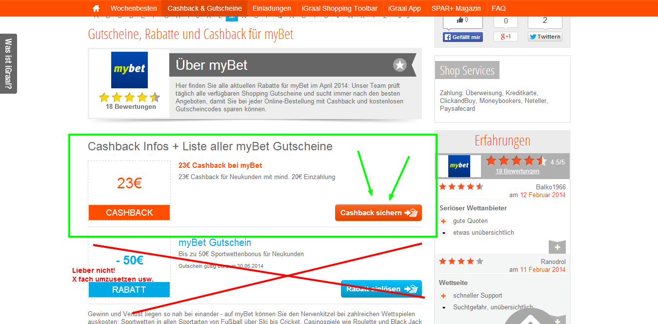 Kurz: Es gibt über igraal mehr Cashback als man auf mybet einzahlen muss.Geändert von qmiq (13.04.2014 um 21:38 Uhr)