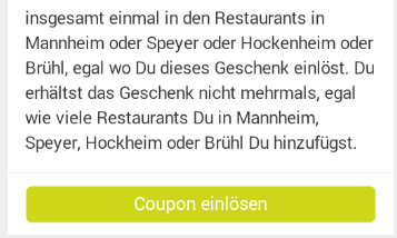 hat jmd schon einen gutschein versucht bei einem restaurant einzulösen der nicht in der app drin ist?