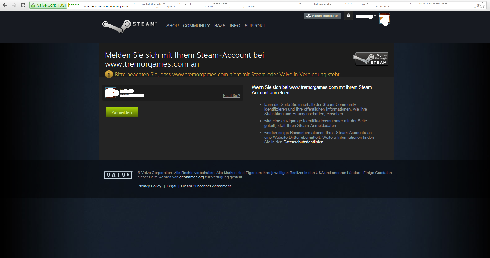 Nun für die, die ihren Steam-Account mit TremorGames verbinden wollen, geht ihr nun auf Settings (Das Zahnrad-Symbol oben rechts beim Accountnamen)
