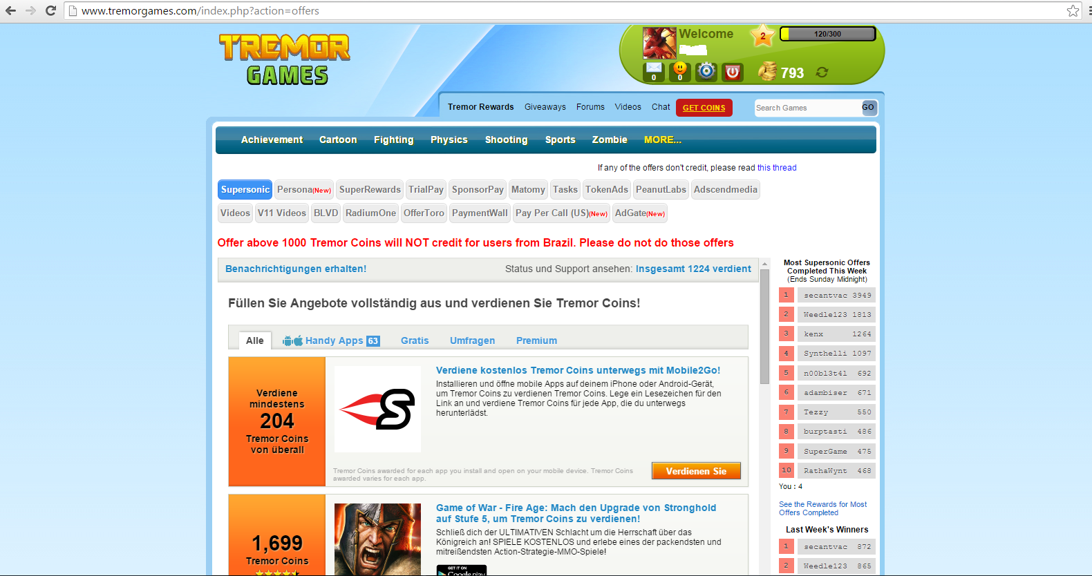Tremorgames ist schon ganz Nett. Nur finde ich das einzige Problem ist das manchmal die Punkte nicht zugerechnet werden obwohl man die Aufgabe gemacht hat.