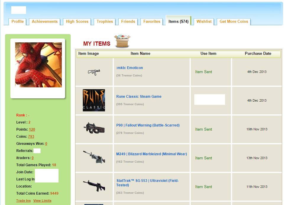 Damit ihr auch seht, das ich Items/Games erhalten habe hier ein letzter Screen (74$):