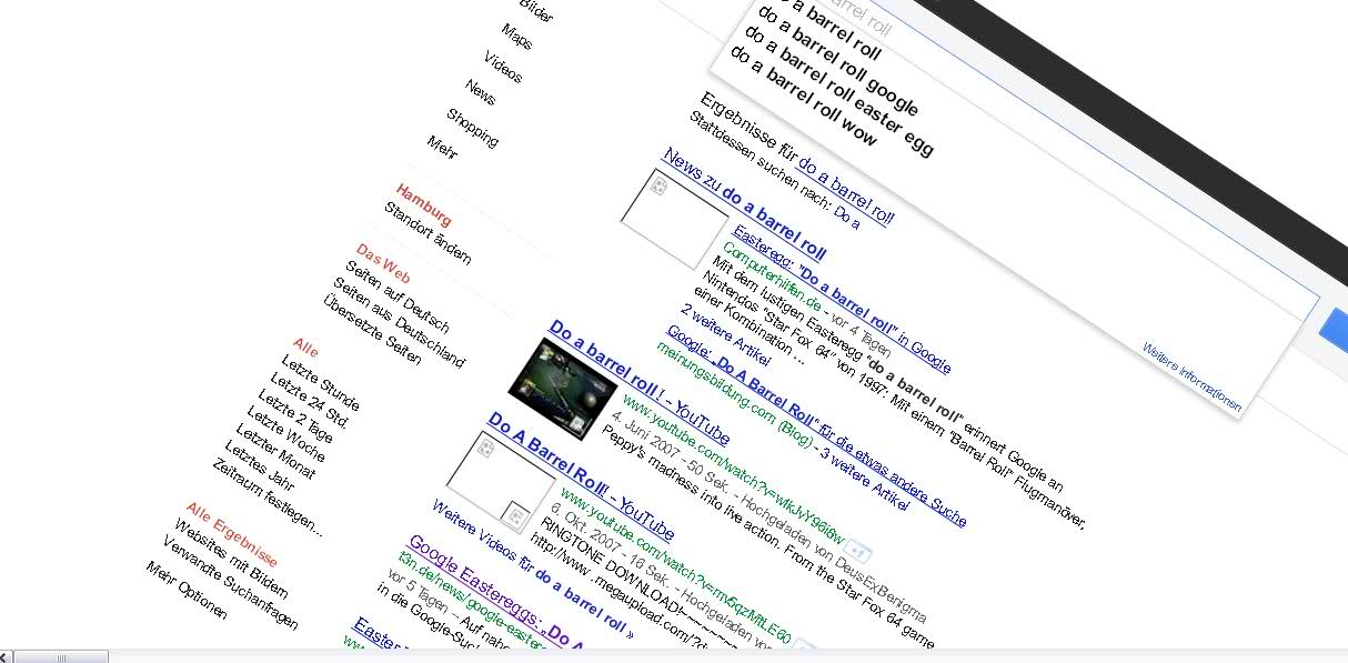 Schwachsinn und dennoch irgendwie lustig. Bei ''Do a'' rastet Google ein wenig aus und dreht sich um die eigene Achse und bei askew verändert sich die Schrift und wird Schief, right? ;o