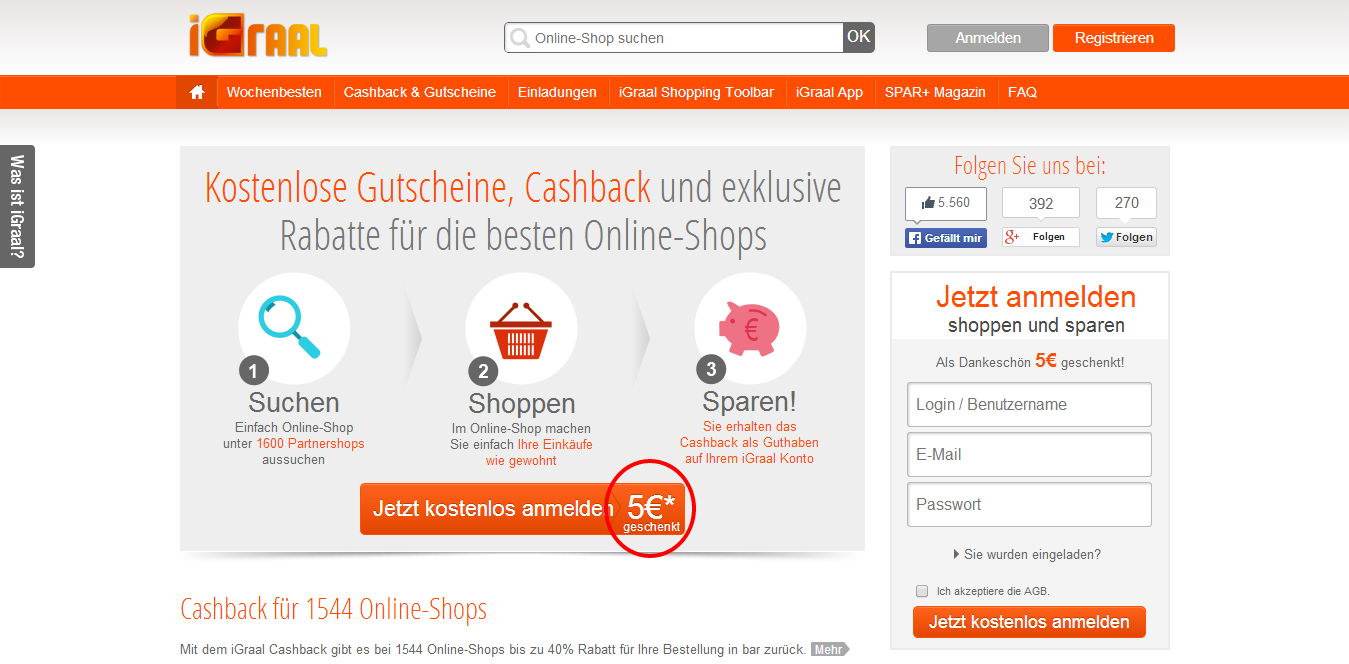 Wie ihr sehen könnt bekommt ihr alleine für die Anmeldung schon 5€ (Update 09.05.14 zurzeit sogar 10€)