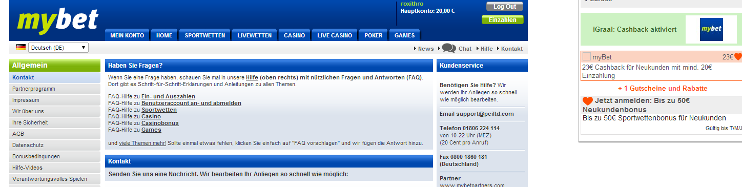 Kurz: Es gibt über igraal mehr Cashback als man auf mybet einzahlen muss.