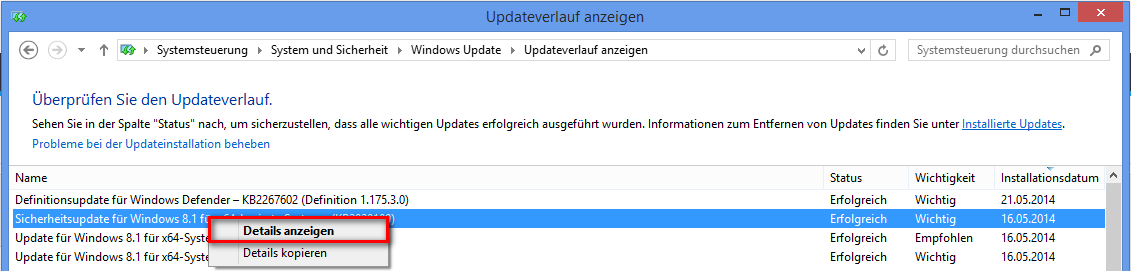 Ansonsten: Rechtsklick in der Liste der Updates-Machen und 'Details' auswählen