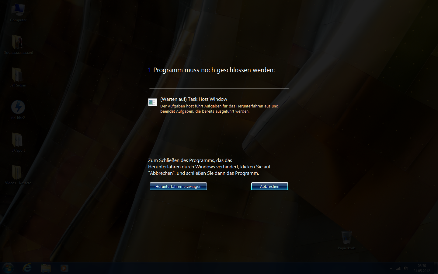 Das Problem ist z.B. heute morgen habe ich den PC nur ganz kurz angemacht, um was in meinem Ordner nachzuschauen und als ich diesen ausschalten wollte - kam wieder das "Herunterfahren erzwingen".