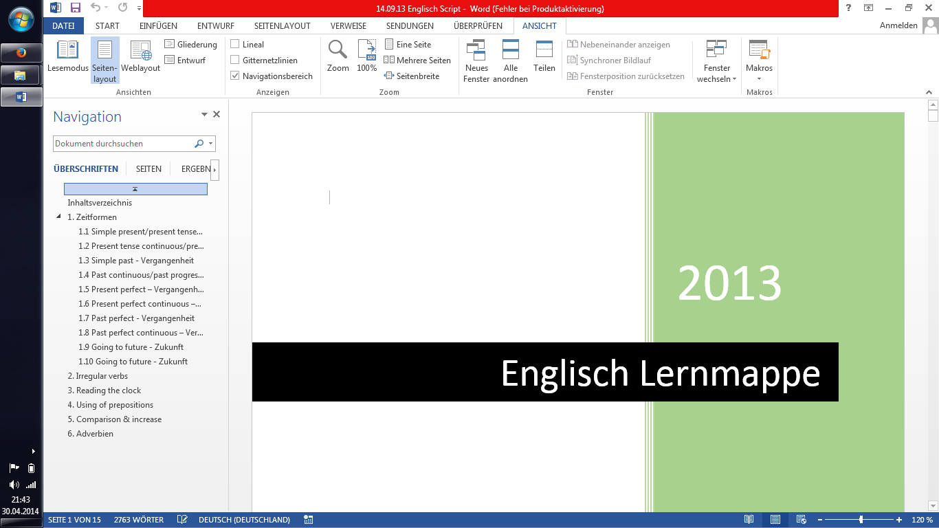 ich habe folgende Frage: Gibt es eine Möglichkeit, Tabs bzw. Register (wie in Excel oder in einem Browser) in Word 2013 zu erstellen? Ich möchte ein größeres Dokument erstellen und möchte nicht für jedes Kapitel eine neue Datei erstellen. Daher wäre die Einführung von Tabs (ein Tab für jeweils ein Kapitel und insgesamt nur eine Datei) optimal.