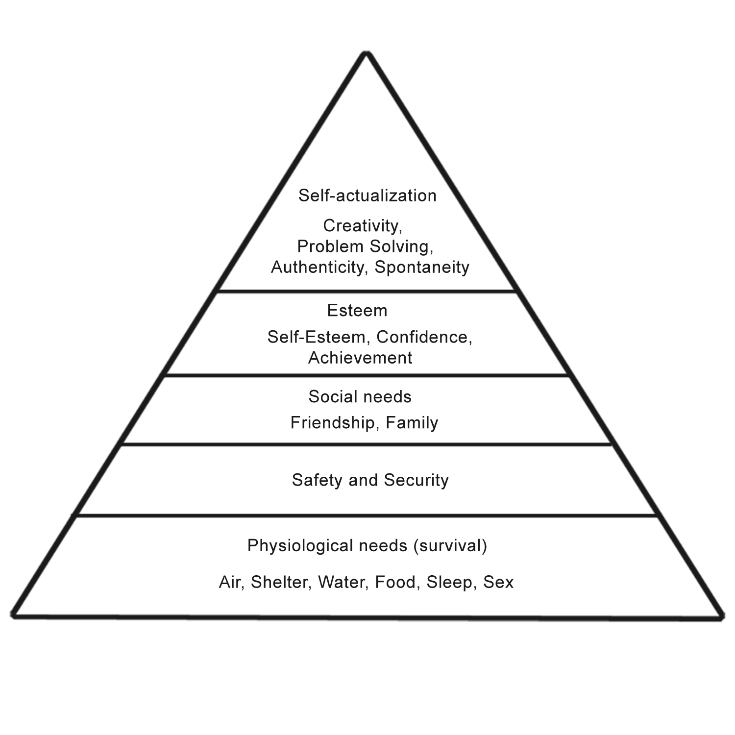 Nein, das Diagramm zeigt, daß dann, wenn die grundlegenden Bedürfnisse an der Basis der Pyramie gestillt sind, die meisten Menschen natürlich weitere Motivationen haben werden, um dennoch tätig zu bleiben. Man darf das alles nicht aus der Warte eines Menschen sehen, der irgendwie so merkwürdig gestrickt ist, daß es ihm ausreicht, wenn er ein Sofa, ein TV und genügend Kartoffelchips hat, weil mehr braucht er nicht zum Leben. Für alle anderen Menschen werden dann weitere Motivatoren wirksam, die in den höher liegenden Schichten der Pyramide angesiedelt sind und mit Geld nur wenig bis überhaupt nichts zu tun haben. Mit "Achievement" etwa ist gemeint, daß man ein persönliches Ziel verwirklicht, was eben beim Gelingen dann ein angenehmes Erfolgsgefühl beschert. Wer meint, der Rest der Menschheit hätte nur ein einziges persönliches Ziel, nämlich möglichst viel Geld zu verdienen, setzt sich dem Verdacht aus, selber eine solche Person zu sein, die kein anderes Ziel hat. Wem selber das Ziel, möglichst viel Geld zu verdienen, weniger wichtig ist als andere Ziele im Leben, wird auch etwas zurückhaltender damit sein, anderen zu unterstellen, nur auf Geld aus zu sein.