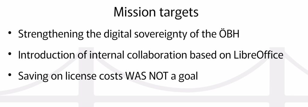 Zum Abschluss des Projektes hielten die beiden Projektverantwortlichen einen 30-Minütigen Vortrag unter dem Titel Migration to LibreOffice – A step to digital sovereignty; Approach and experiences auf der LibreOffice-Konetenz im September 2025.7 Die insgesamt 15 Folien sind als PDF-Datei frei abrufbar. Ergänzend wurde im Ö1 Podcast Digital.Leben am 16.09.2025 darüber gesprochen.8 Leider ist die Folge nicht mehr abrufbar, da Ö1 diese anscheinend nach 3 Monaten löscht…