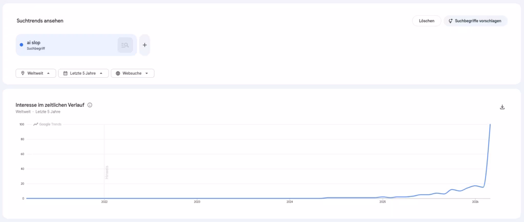 Wörtlich übersetzt bedeutet „Slop“ Schlampig, je nach Kontext auch Schlamm. Hier ist ersteres gemeint: „Slop“ bzw. „AI Slop“ setzte sich ab Ende 2022 für die massenhafte Verbreitung von minderwertigen Inhalten durch, typischerweise künstlich generiert. Sie sind auf maximalen Profit mit minimalem Aufwand ausgelegt, ohne sinnvollen Mehrwert zu bieten. Natürlich ist das keine Erfindung von „KI“. Auch vorher wurden Medien von geringer Qualität ins Netz gestellt. Neu ist allerdings die Quantität. Seit ChatGPT hat die breite Masse Zugang zu solchen Werkzeugen. Und nutzt sie, um mit wenig Aufwand Inhalte zu generieren.